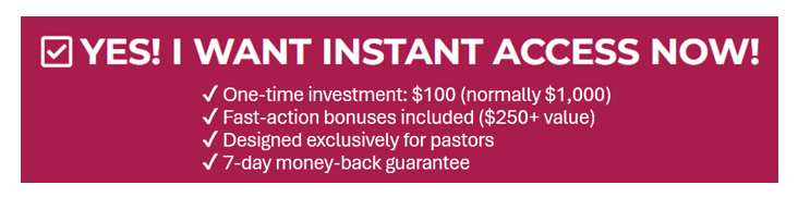 This program could easily sell for $1000, and many pastors would gladly pay that—because they know they’ll make back far more in financial security, peace of mind, and long-term wealth