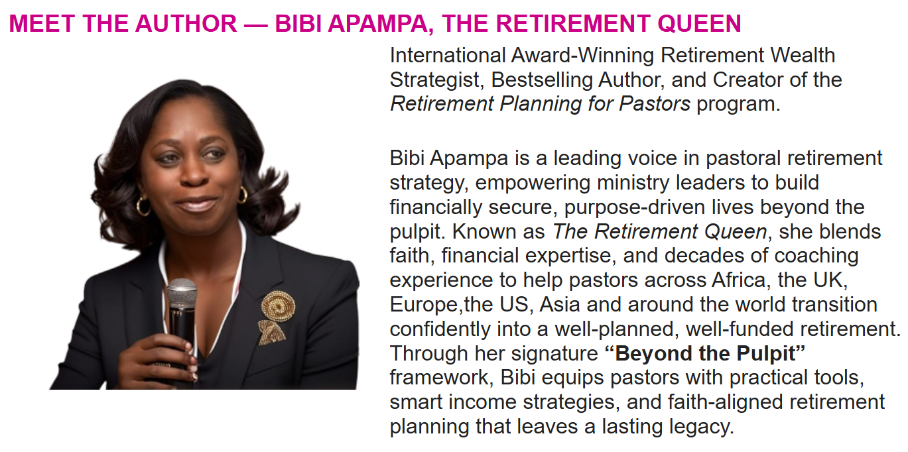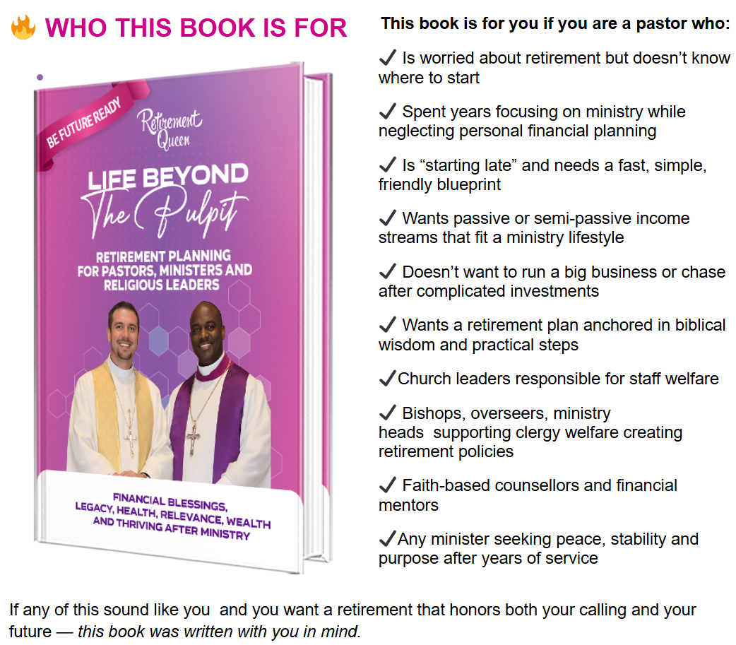 Ministry Heart: As an ordained Minister, Bibi understands the unique challenges and opportunities of ministry life. Her work blends spiritual sensitivity with practical wealth-building wisdom, making her one of the most trusted voices in clergy retirement today.